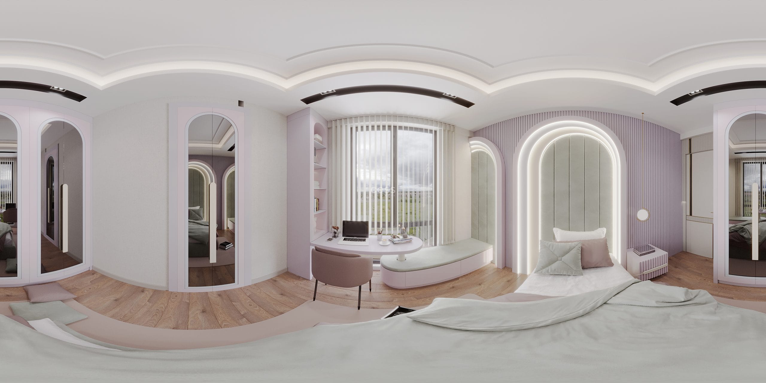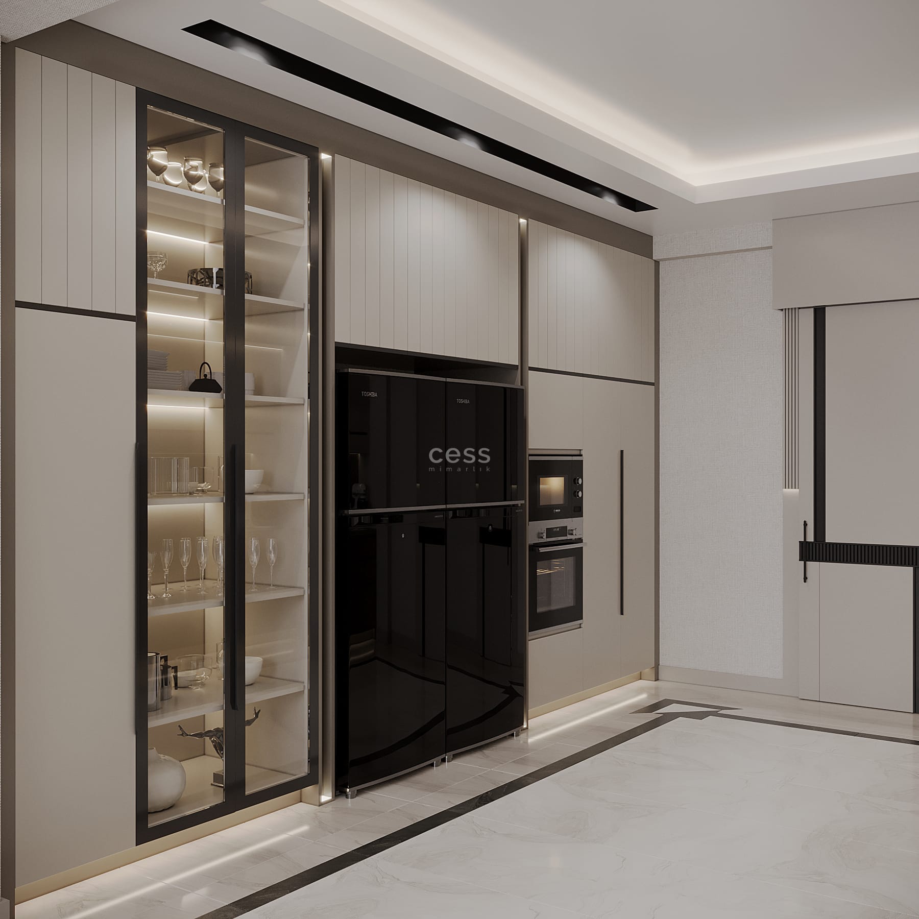 Yatak odasında kullanılan zarif detaylar ve konforlu dokunuşlar, dinlendirici bir ortam sağlarken, mutfak bölümündeki modern tasarım çözümleri fonksiyonellik ve estetiği bir araya getiriyor. Mutfakta yer alan kaliteli malzemeler, geniş tezgah alanları ve akıllı depolama çözümleri, mutfağı hem keyifli hem de pratik bir yaşam alanına dönüştürüyor. Bu örnek daire, ev dekorasyonları açısından da ilham verici çözümler sunuyor.